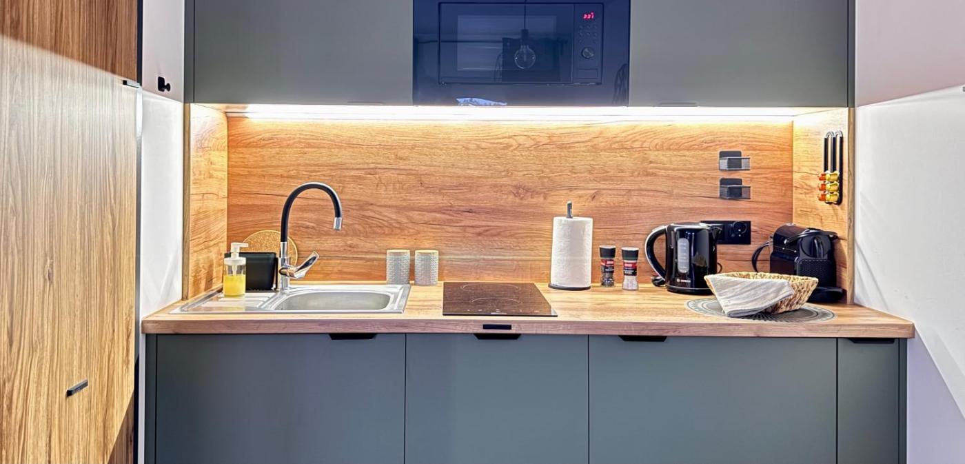W każdej opcji zakwaterowania znajduje się kuchnia z pełnym wyposażeniem, w tym lodówką, jak również część wypoczynkowa z rozkładaną sofą, telewizor z płaskim ekranem oraz prywatna łazienka z prysznicem i suszarką do włosów. Wyposażenie obejmuje również zmywarkę, mikrofalówkę, płytę kuchenną, ekspres do kawy i czajnik.