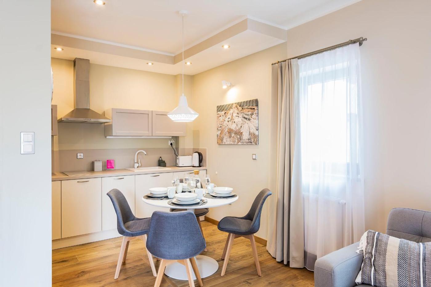 Apartament z 1 sypialnią. This apartment comprises 1 living room, 1 separate bedroom and 1 bathroom with a shower and a hairdryer. Guests can make meals in the kitchenette that comes with a stovetop, a refrigerator, kitchenware and a toaster. The apartment provides a seating area, a dining area, an electric kettle, heating, as well as a flat-screen TV. The unit offers 2 beds. Apartament - 4 osobowy. Powierzchnia pokoju ok.: 40 mkw.