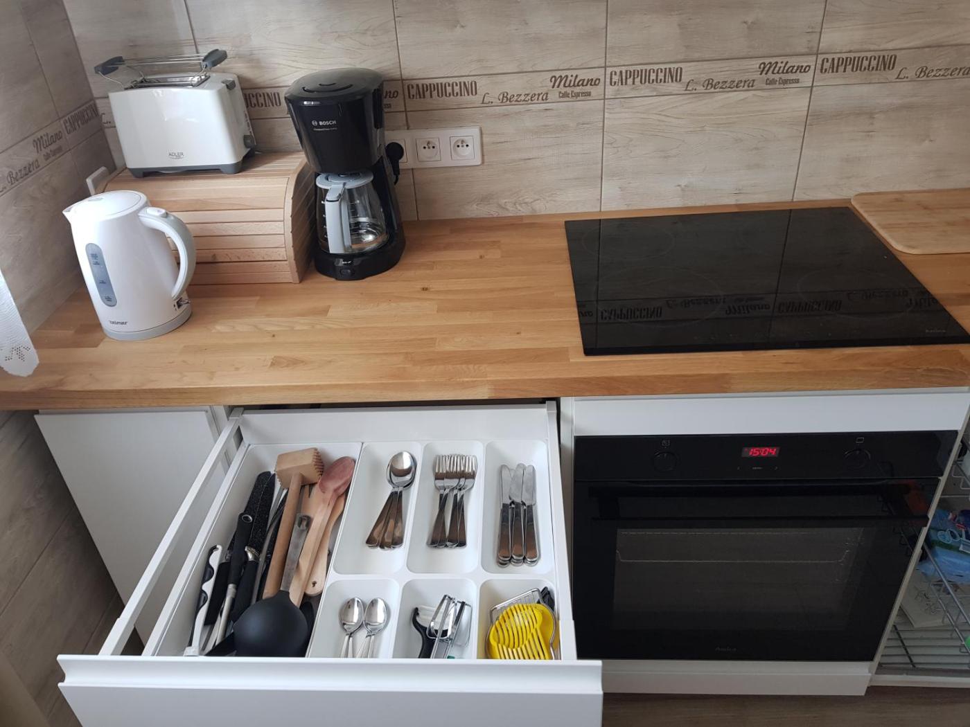Oferta apartamentu obejmuje kilka sypialni (2), salon, kuchnię z pełnym wyposażeniem, w tym lodówką i ekspresem do kawy, a także łazienkę (1) z prysznicem oraz suszarką do włosów. W apartamencie zapewniono ręczniki i pościel.