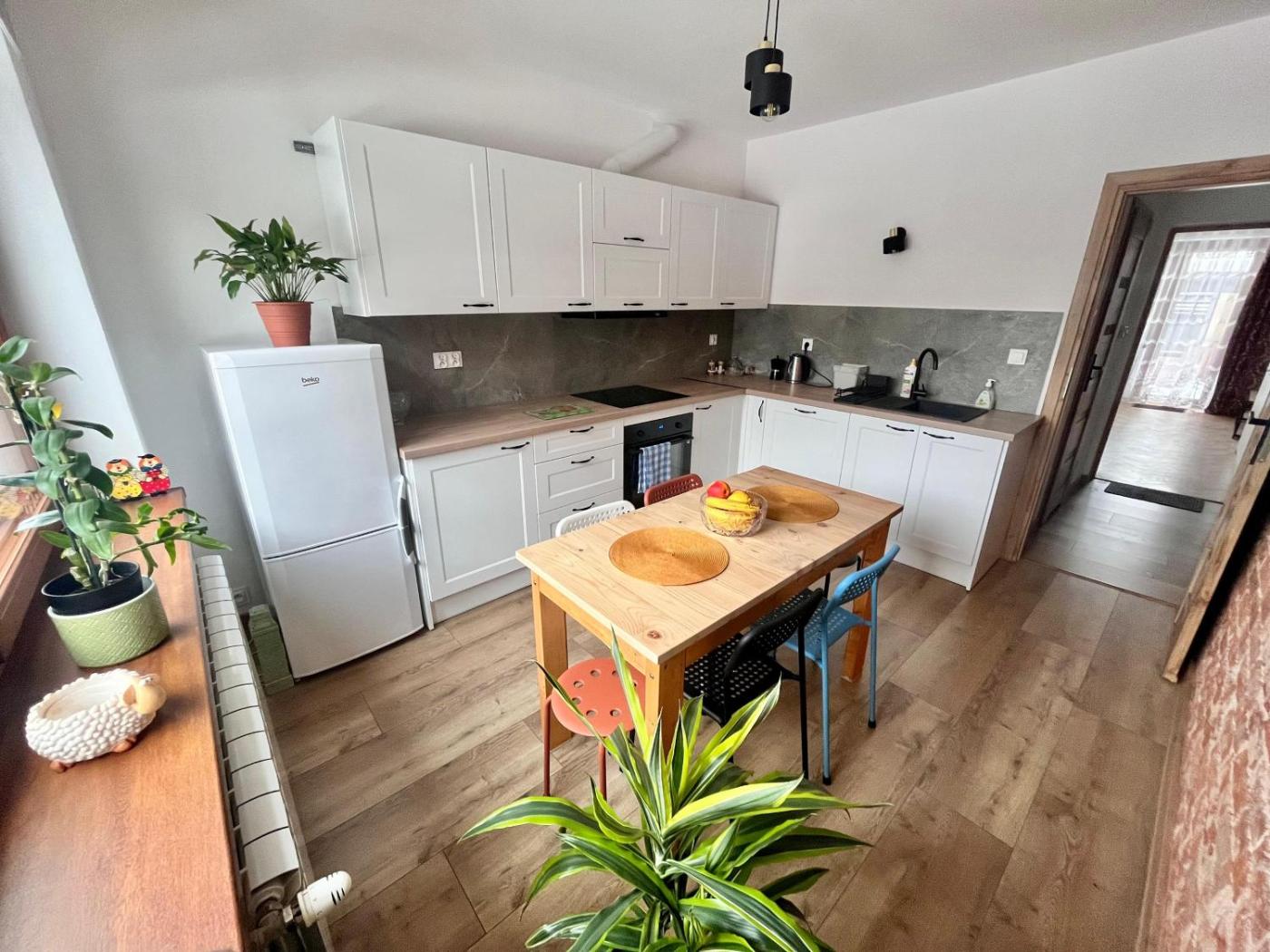 Apartament z 2 sypialniami. Boasting a private entrance, this spacious apartment also comes with 1 living room, 2 separate bedrooms and 1 bathroom with a shower. The fully equipped kitchen has a stovetop, a refrigerator, a dishwasher and kitchenware. The apartment features a flat-screen TV, a tea and coffee maker, a dining area, a wardrobe as well as garden views. The unit has 5 beds. Apartament - 7 osobowy. Powierzchnia pokoju ok.: 73 mkw.