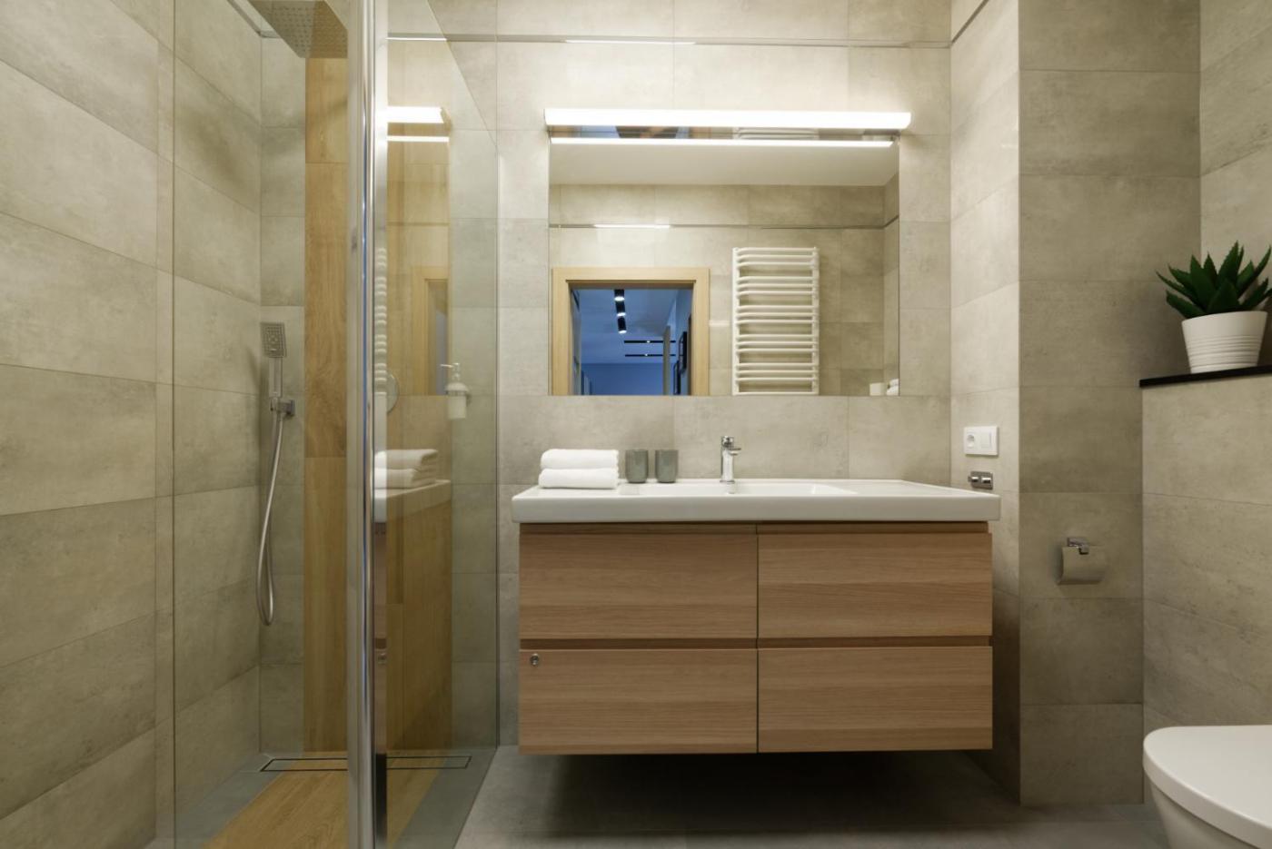 Apartament z 1 sypialnią. Featuring a private entrance, this apartment consists of 1 living room, 1 separate bedroom and 1 bathroom with a walk-in shower and a hairdryer. Guests can make meals in the kitchen that is equipped with a stovetop, a refrigerator, a dishwasher and kitchenware. The apartment provides a flat-screen TV with streaming services, a washing machine, soundproof walls, a tea and coffee maker as well as garden views. The unit offers 2 beds. Apartament - 4 osobowy. Powierzchnia pokoju ok.: 55 mkw.