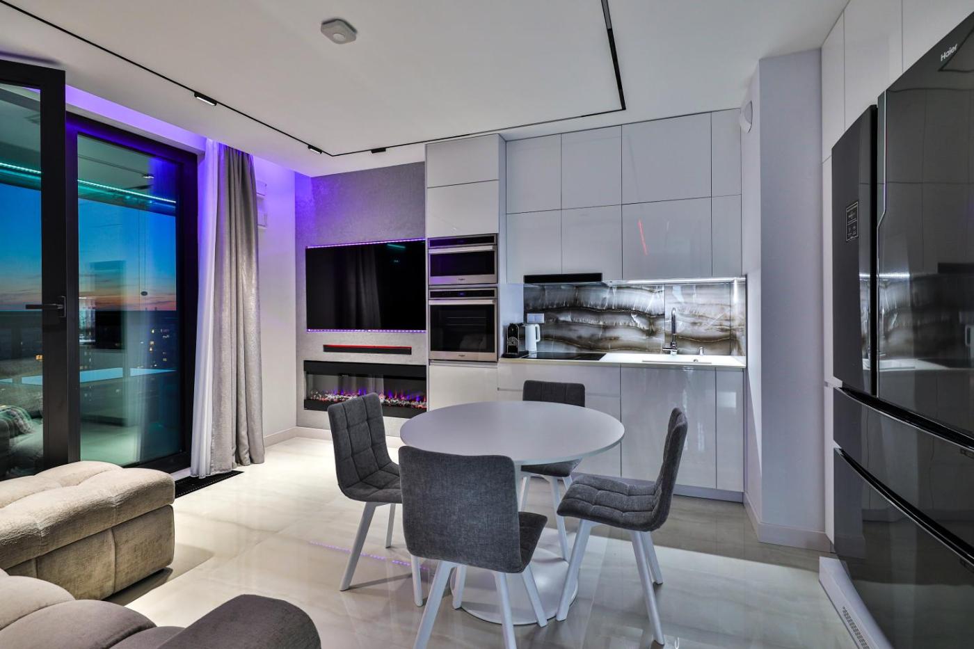 Apartament z 2 sypialniami. This apartment features a fireplace. This apartment features 1 living room, 2 separate bedrooms and 1 bathroom with a shower and free toiletries. The well-equipped kitchen has a stovetop, a refrigerator, a dishwasher and kitchenware. The air-conditioned apartment features a flat-screen TV with streaming services, a washing machine, soundproof walls, a seating area as well as city views. The unit has 3 beds. Apartament - 6 osobowy. Powierzchnia pokoju ok.: 54 mkw.
